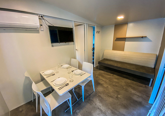 Ubytování za celý mobilní dům na 7 nocí, používání bazénů, spotřebu vody a elektrické energie, služby stálého delegáta CK MAJÁK Travel, povinné pojištění proti úpadku CK, wi-fi připojení, klimatizace, TV – SAT, parkovné povinný registrační poplatek.
